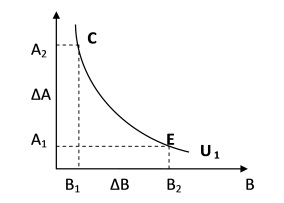 Если взять набор товаров: 12 А и 2 В, то мы получим тот же уровень полезности, что при потреблении набора товара 6А и 4В. Потребителю все равно, какой набор товаров предпочесть, т.к. полезность и от того и от другого одинаковая, поэтому кривая называется кривой безразличия.