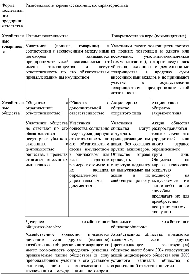 Таблица 11.3 Организационно-правовые формы коммерческих организаций