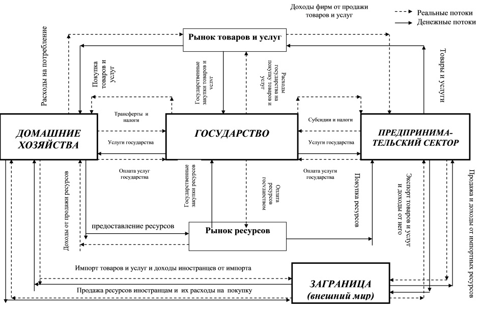 Перечисленные экономические агенты взаимодействуют друг с другом через систему рынков.