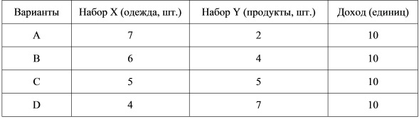 Таблица 6.1 Товарные наборы одежды и продуктов