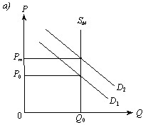 У межах найкоротшого періоду в розпорядженні виробників не має часу, щоб відреагувати на зміни в попиті, тим більше на зміни в пропонуванні. Їм недосить часу, щоб зробити позитивні зміни у виробництві або збільшити обсяг виробництва. Тому, як це видно на рис. 9.1 а, підвищення ціни попиту з P0 до Pm лише нормує споживання фіксованої кількості шинки, але ніяким чином не веде до зростання обсягу її виробництва. Тому крива пропонування шинки SМQ0 буде абсолютно нееластичною, тобто вертикальною.