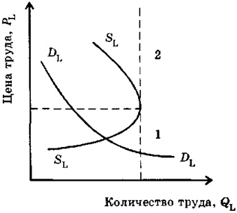 Рис. 8.3. Рынок труда. Предложение труда по принципу замещения «эффекта дохода» «эффектом досуга»