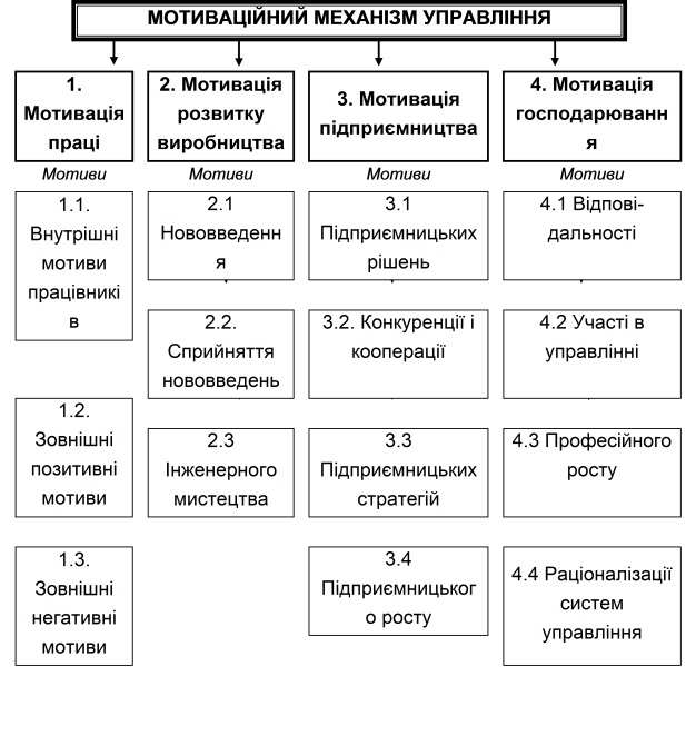 Мотиваційний механізм організації можна представити чотирма комплексами мотивів, кожний з яких спрямований на досягнення визначених цілей ( рис. 10.2.).