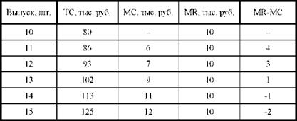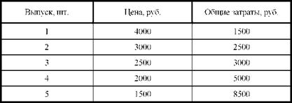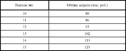 2. Предприятие находится в условиях совершенной конкуренции. Цена установилась на уровне 10 тыс. руб. Зависимость общих затрат от выпуска продукции представлена в таблице.