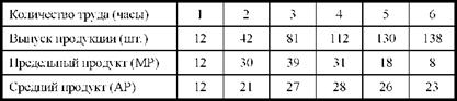 Таким образом, оптимальные размеры производства равны 4 часам. При увеличении рабочего времени производительность дополнительного ресурса труда ниже средней производительности.