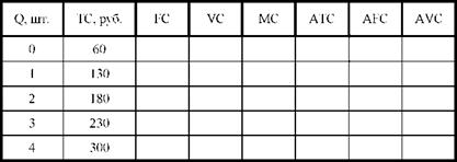 4. В таблице показана зависимость общих затрат предприятия от выпуска продукции. Рассчитайте постоянные, переменные, средние постоянные, средние переменные, средние общие и предельные затраты.