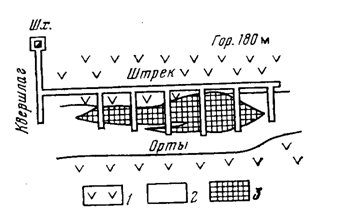 Рис. 4. Схема разведки рудной залежи ортами, пройденными из штрека: