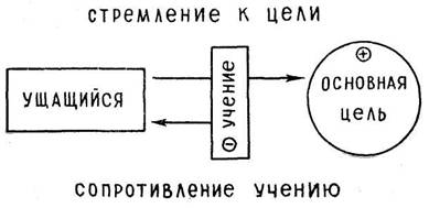 Нетрудно заметить, что данная ситуация характеризуется наличием противоборствующих сил, т. е. является в принципе конфликтной. Она, поэтому, связана иногда со значительным психическим напряжением, требует внутренних усилий и порой борьбы индивида с самим собой. При большой остроте такого конфликта могут возникать тенденции «выйти из ситуации» путем отказа, или обхода барьера, или невроза. Ученик бросает учебу, или пытается заменить ее шпаргалками, или «срывается»— начинает хулиганить, впадает в апатию и т. п.