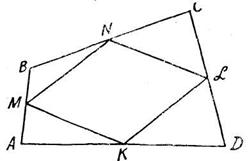 Дан четырехугольник (ABCD), середины сторон которого соединены между собой (рис. 20).