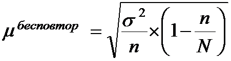 Средняя ошибка при бесповторном отборе с учетом корректировочного коэффициента и определяется по формуле: