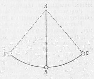 Но стоит лишь отвести шарик из положения равновесия (точка В) в точку С и затем отпустить его, как равновесие нарушится и маятник начнет совершать колебательные движения. С возрастающей скоростью шарик устремится по дуге СВ, по инерции пройдет точку В и, замедляя движение, дойдет до точки Д. Остановившись на мгновение, шарик начнет обратное движение под влиянием той же силы притяжения, пройдет по инерции точку В и достигнет точки С. Совершилось полное колебательное движение.