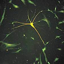 Рис.6. Иммунофлюоресцентная окраска на нейроспецифические маркеры клеток, дифференцирующихся в нейральном направлении, в культуре стромальных стволовых клеток костного мозга человека. Такие клетки использовали харьковские хирурги для лечения болезни Паркинсона.