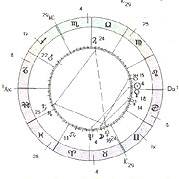 ..В первую очередь я покажу вам гороскоп Юнга, а затем мы будем говорить о его идеях, базирующихся на его гороскопе: ..Асцендент в Водолее, с Сатурном, управителем Водолея, восходящим в первом доме. Это в значительной степени делает его человеком науки. Он был связан с принципами Водолея.. Сатурн в первом доме. Но Юнг - Лев, он совсем не заинтересован в тех вещах, о которых я вам сейчас говорила в связи с Сатурном. У Юнга Солнце во Льве, на Десценденте, в квадратуре к Нептуну. Это очень отличается от Юнга-ученого. Это интуитивная сторона личности Юнга, которая понимает символы, мифологию, астрологию, предсказание. Таким образом, есть две стороны личности Юнга, о которых я бы хотела поговорить сегодня в связи с его идеями. Не я это придумала - Юнг сам говорит нам о том, что в нем живут два человека - "номер один" и "номер два". Возможно это расщепление обусловлено Ураном - управителем Водолея, находящимся в седьмом доме. Я бы хотела рассмотреть Юнга 1 и Юнга 2: Юнга-ученого и Юнга-предсказателя.