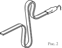 Взяв одну из полосок за концы, поместите ее над раскаленной электроплиткой. Перемещая и поворачивая полоску, держите ее над плиткой до полного размягчения, а затем быстро изогните так, чтобы получились два отогнутых колена. Зафиксируйте изделие, чтобы, остыв, оно сохранило свою форму. Вторую полоску изогните так же, используя первую в качестве шаблона. Вообще говоря, форма световода может быть произвольной, рекомендованная просто более удобна в учебных опытах. Желательно, чтобы радиус кривизны изгибов световода был не менее 15 мм.