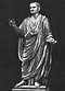 [с.45] Одновременно с могучим, жизнеутверждающим реализмом в период Флавиев существует идеализирующее направление, которое характерно для официальных императорских портретов. Художники этого направления обращались к эллинистической скульптуре, к статуям богов и эллинистических царей, а не к греческим классическим статуям V-IV веков до н.э., как мастера периода Юлиев-Клавдиев; поэтому в их произведениях меньше строгости и больше свободы. Идеализация образа императора развивалась в двух направлениях: во-первых, изображению императора придавали облик героя или бога, во-вторых, стремились придать образу высшие моральные добродетели, подчеркнуть его мудрость и благочестие.