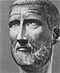 Не менее интересен и датирующийся более поздним временем тАУ около середины IV века тАУ портретный бюст в Национальном музее в Риме. В нем видят портрет сына Константина I тАУ Константина II (337 тАУ [с.94] 361 гг. н.э.). По яркости индивидуальной характеристики изображенного он примыкает к портрету в Копенгагене. Сильно вытянутое лицо с длинным костистым носом, выступающим подбородком, близко посаженными глазами и оттопыренными ушами поражает своей некрасивостью. Чуть загнутые на концах пряди волос низко спадают на лоб. Такая прическа характерна для послеконстантиновских портретов. Пристальный взгляд узких глаз, смотрящих из-под нависающих бровей, плотно сжатые губы придают твердость и значительность этому лицу. Это один из последних позднеримских портретов, сохраняющих еще черты реалистической характеристики изображаемого лица.