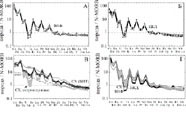 По Pb изотопной систематике лавы ЦКД менее радиогенные, чем породы ВВФ, но близки к полю СХ (рис.7 В). Породы ВПТ идентичны с другими лавами СХ. Для сравнения, на рис.8 показаны данные для вулкана Бакенинг (ВВФ, 200 км к югу от пересечения, [12]). Эти породы еще менее радиогенны по Sr при сравнимых значениях Nd и Pb изотопов. Исследования клинопироксенов (предварительно очищенных) из мантийных ксенолитов Камчатки (неопубликованные данные) показало, что по Nd изотопам мантийные ксенолиты близки вулканическим породам, но по Sr отношениям разброс точек ещё более широкий.