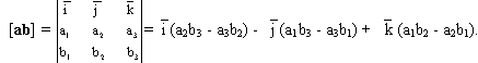Если векторы a и b коллинеарны, то sin(a^b) = 0 и [ab] = 0, в частности, [aa] = 0. Векторные произведения ортов: [ij] = k, [jk] = i, [ki] = j.