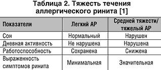 В зависимости от особенностей клинической картины АР выделяют 2 формы этого заболевания, характеристика которых приведена в таблице 1. По тяжести течения различают легкий, средней тяжести и тяжелый АР. В основе этого деления лежит влияние АР на качество жизни больных и выраженность симптомов болезни (табл. 2)