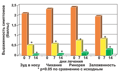 Рис. 1. Динамика назальных симптомов у больных в процессе лечения