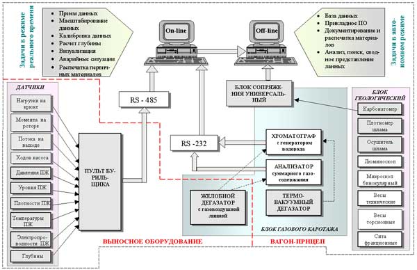 прием и оперативную обработку информации от датчиков технологических параметров бурения, расположенных на буровой;