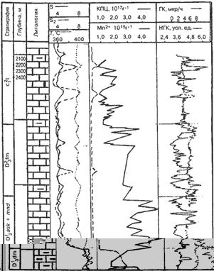 Из этого следует, что нефтегазонасыщенному коллектору соответствуют высокие значения S, а нефтематеринским тАУ высокие значения S2, поэтому значения Рнв интервалах развития коллекторов более высокие [6]. Величина общего углеводородного потенциала породы Р представляет собой сумму S и S2.