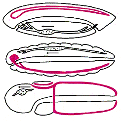 Передний конец тела всюду обращен влево, спинная сторона - кверху.