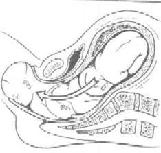 После раскрытия шейки матки и излития околоплодных вод сокращения маточной мускулатуры способствуют изгнанию плода из матки. Родовой канал (путь продвижения плода) имеет изогнутую форму. Он ограничен костями малого таза и мягкими тканями тАФ шейкой матки, влагалищем, мышцами тазового дна. Вход в родовой канал представляет собой костное кольцо определенных размеров. При продвижении по родовому каналу плод coвершает ряд последовательных и строго определенных движении, облегчающих его рождение. В начале второго периода родов головка плода сгибается и прижимается подбородком к грудке, а личико обращено вправо или влево. Продвигаясь по родовому каналу, плод совершает поворот таким образом, что затылок головки плода поворачивается кпереди, а личико тАФ кзади, в сторону крестца матери.