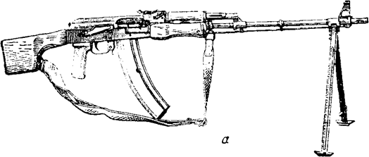 В комплект автомата (пулемета) входят: принадлежность, ремень и сумка (у пулемета две сумки) для магазинов; .в комплект автомата (пулемета) со складывающимся прикладом, кроме того, входит чехол для автомата (пулеВнмета) с карманом для магазина, а в комплект автомата (пулемета) с ночным прицелом входит также ночной стрелковый прицел универсальнВными