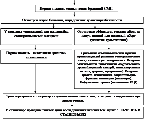 Если аборт Влв ходуВ» или неполный аборт диагностируется в I триместре беременности, то неотложная помощь состоит в опорожнении полости матки с помощью кюретки, чем достригается быстрая остановка кровотечения.
