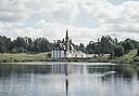 При входе в Дворцовый парк ворота служат монументальной рамой картины, какой является вид на Белое озеро.