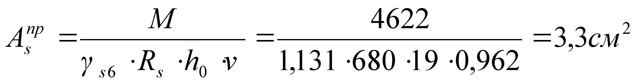 Определяем площадь сечения арматуры по формуле