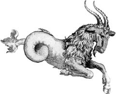 Козерог - мифическое существо с телом козла и хвостом рыбы. По наиболее распространенной древнегреческой легенде козлоногий бог Пан, сын Гермеса, покровитель пастухов, испугался стоглавого великана Тифона и в ужасе бросился в воду. С тех пор он стал водным богом, и у него вырос рыбий хвост. Превращенный богом Зевсом в созвездие , Козерог стал владыкой вод и предвестником бурь. Считалось, что он посылает на землю обильные дожди. По другой легенде - это коза Амалтея, вскормившая своим молоком Зевса. Индейцы назвали это созвездие Макара, т.е. чудо-дракон, тоже наполовину козел, наполовину - рыба. Некоторые народы изображали его полукрокодилом - полуптицей. Сходные представления бытовали и в Южной Америке. Когда Солнце вступало в созвездие Козерога, индейцы праздновали Новый год, надевая для церемониальных танцев маски, изображавшие козлиные головы. А вот коренные австралийцы называли созвездие Козерога созвездием Кенгуру, за которым гоняются небесные охотники, чтобы убить его и зажарить на большом костре. У многих древних народов козу почитали как священное животное, в честь козы совершались богослужения. Люди облачались в священные одежды из козьих шкур и приносили дар богам - жертвенного козла. Именно с такими обычаями и с этим созвездием связано представление о "козле отпущения" - Азазеле. Азазель - (козлоотпущение) - имя одного из козлообразных богов, демонов пустыни. В так называемый день козлоотпущения отбирались два козла: один - для жертвоприношения, другой для отпущения в пустыню. Из двух козлов священники выбирали, которого Богу, а которого Азазелю. Сначала приносилась жертва богу, а затем к первосвященнику подводили другого козла, на которого он возлагал руки и тем самым как бы передавал ему все грехи народа. А после этого козла отпускали в пустыню. Пустыня была символом подземного царства и естественным местом для грехов. Созвездие Козерога располагается в нижней части эклиптики. Возможно, это и вызвало представление о преисподней. В созвездии Козерога около 2 тыс. лет назад находилась точка зимнего солнцестояния. Древний философ Макробий полагал, что Солнце, пройдя самую нижнюю точку, начинает карабкаться вверх, словно горный козел, стремящийся к вершине.