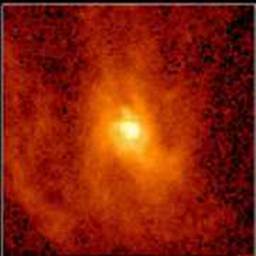 Японский астроном Макото Мионис и его коллеги во время наблюдений туманности М106 обнаружили странное поведение ее космического мазера. Оказалось, что облака вращаются вокруг какого-то центра, удаленного от них на 0,5 светового года. Особенно заинтриговала астрономов особенность этого вращеВнния: периферийные слои облаков перемещались на четыре милВнлиона километров в час! Это говорит о том, что в центре соВнсредоточена гигантская масса. По расчетам она равна 36 милВнлионам солнечных масс.