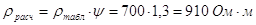 где rтабл.=700 Ом × м - измеренное удельное сопротивление грунта (из табл. 6.3 [2] для каменистого грунта); y=1,3 - климатический коэффициент, принятый по табл. 6.4 [2] для каменистого грунта.