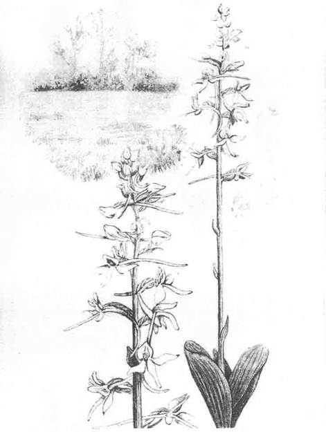 Ночная фиалка, кукушница двулистная, бальзаВнмин дикий, ночные духи, полевой жасмин, ночная красавица тАФ все эти названия принадлежат любке двулистной. И если любка неприметна в дневное время, то вечером и ночью она поистине царствует, так как её удивительный нежный запах наполняет июньский лес. На этот чарующий аромат и светяВнщуюся при лунном свете белизну цветков слетаются бабочки. Причём ВлприсестьВ» на цветок они не могут, поскольку у него нет приспособлений для того, чтоВнбы удерживать насекомых. Поэтому бабочки лакоВнмятся нектаром на лету. В основании стебель растеВнния охвачен широкими черешками 2 крупных светВнло-зелёных удлинённо-овальных листьев, почти лежащих на земле, с блестящей, словно лакироВнванной, поверхностью. Корни в виде 2 клубней: один тАФ сморщенный, старый; другой тАФ поменьше и светлее, молодой, в нём накапливаются запасные вещества для развития побегов следующего года. В старину клубни этой орхидеи считались привоВнротным зельем, отсюда название ВллюбкаВ». Стебель любки увенчан кистью белоснежных цветков, наВнпоминающих изящных бабочек. Лепестки плотные и сочные, словно фарфоровые; три из них сложены шлемом, два отогнуты в сторону, а один свисает губой, у основания которой длинный и тонкий шпорец, заострённый на конце. Размножается любка вегетативно и семенами. Зацветает на 6тАФ8-й год жизни.