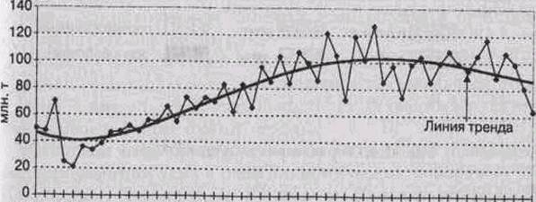 Рис.2. Валовой сбор зерна в России в 1928 тАУ 1997 гг.[3]