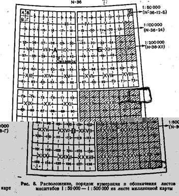 Как видно из рис. 8, счет листов всех масштабов ведется слева направо и сверху вниз, при этом: