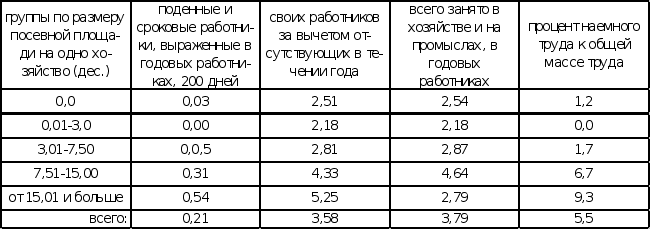 Мы проследили, что порой крестьяне увеличивали свою посевную площадь за счет аренды, при этом они могли еще и нанимать рабочую силу. Зависимость наемного труда от увеличения площади хорошо демонстрирует таблица №10.