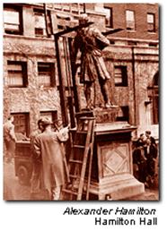 The American Revolution brought the growth of the College to a halt, forcing a suspension of instruction in 1776 that lasted for eight years. However, the institution continued to exert a significant influence on American life through the people associated with it. Among the earliest students and Trustees of KingтАЩs College were John Jay, the first Chief Justice of the United States; Alexander Hamilton, the first Secretary of the Treasury; Gouverneur Morris, the author of the final draft of the U.S. Constitution; and Robert R. Livingston, a member of the five-man committee that drafted the Declaration of Independence.