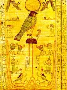 Важное место в египетском пантеоне занимал бог Ра. Он являлся богом солнца, богом света. Каждый день он подымался по небу на свой лодке, освещая всю землю, а вечером он опускался в подземный мир, где вел борьбу с силами тьмы. Он всегда побеждал и вновь каждое утро подымался на небесный свод. Он боролся с силами хаоса. Символом его неизменного возрождения являлся знак анх - это крест, у которого вместо верхней палочки находиться круг ( ). В средневековой алхимии анх являлся символом бессмертия.