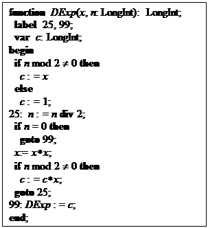 Классический алгоритм возведения в степень посредством последовательного умножения характерен, главным образом, своей неэффективностью в обычных обстоятельствах тАУ его время работы линейным образом зависит от показателя степени.