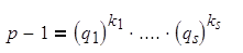 Допустим, что р тАУ 1 = qkh, (q,h) = 1. Алгоритм последовательно строит целые числа uj, j = 0,1,тАж,k, для которых выполняется сравнение