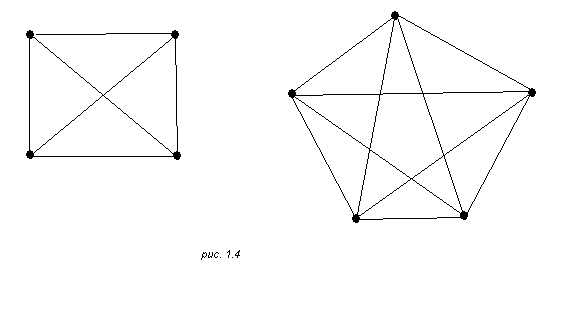 ребрами которого являются всевозможные пары (1.2) для двух различных вершин a и из V. На рис. 1.4 даны схемы полных графов для множеств вершин из четырех и из пяти элементов.