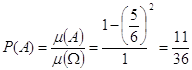Определение 9. Эксперимент удовлетворяет условиям Влгеометрического определения вероятностиВ», если его исходы можно изобразить точками некоторой области Ω в Rm так, что вероятность попадания точки в любую А ÍΩ не зависит от формы или расположения А внутри Ω, а зависит лишь от меры области А (и, следовательно, пропорциональна этой мере):