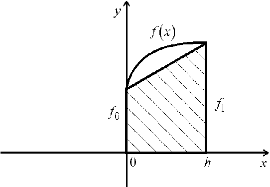 приближенно заменяется площадью заштрихованной трапеции, показанной на рисунке.