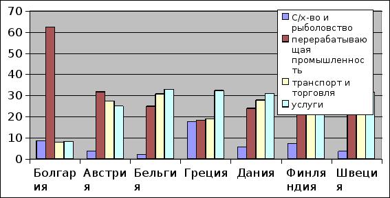 | С/х-во и рыболовство | перерабатывающая промышленность | транспорт и торговля | услуги | |||||