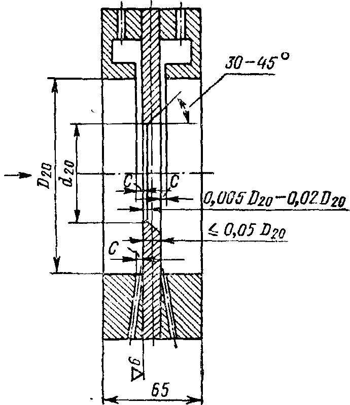 Измерение перепада давления в сужающем устройстве производится через отдельные цилиндрические отверстия или через две кольцевые камеры, каждая из которых соединяется с внутренней полостью трубопровода кольцевой щелью (сплошной или прерывистой) или группой равномерно распределенных по окружности отверстий. При измерении перепада давления в бескамерном сужающем устройстве через отдельные отверстия наилучшие резуль-