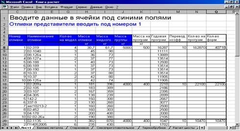 Программа ''Расчет цеха'' составлена в Microsoft Excel и предназначена для расчета литейных цехов серийного производства.