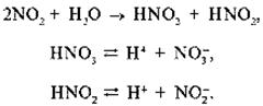 Аэрозоли серной и сернистой кислот конденсируются в водяном паре атмосферы и становятся причиной кислотных осадков. Они составляют около 2/3 кислотных осадков. Остальное приходится на долю аэрозолей азотной и азотистой кислот, образующихся при взаимодействии диоксида азота с водяным паром атмосферы:
